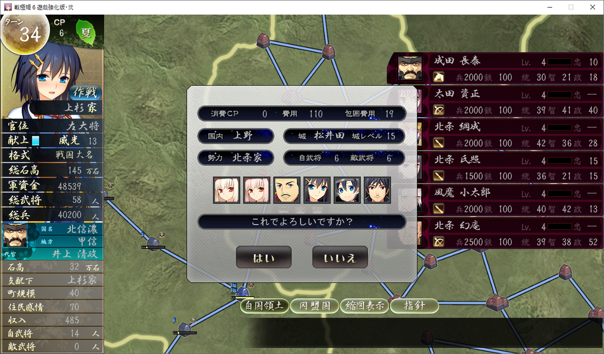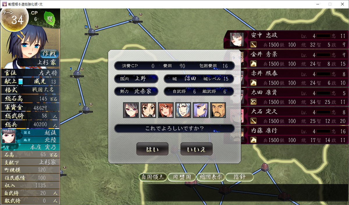 【戦極姫6】上杉家ルート攻略手順④【上野・武蔵侵攻開始~上野・武蔵制圧完了まで】