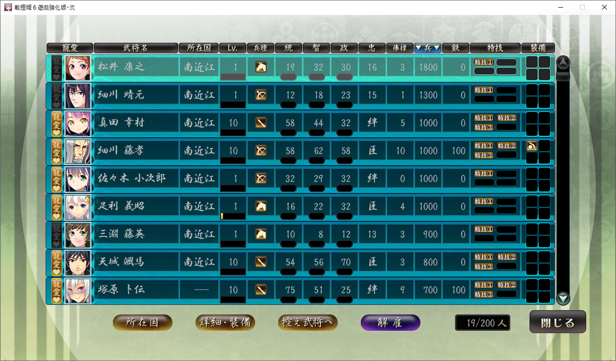 幸い、足利義昭を除く3人(天城颯馬、細川藤孝、明智光秀の3人)は武将レベル10なので、レベルでカバーしましょう。