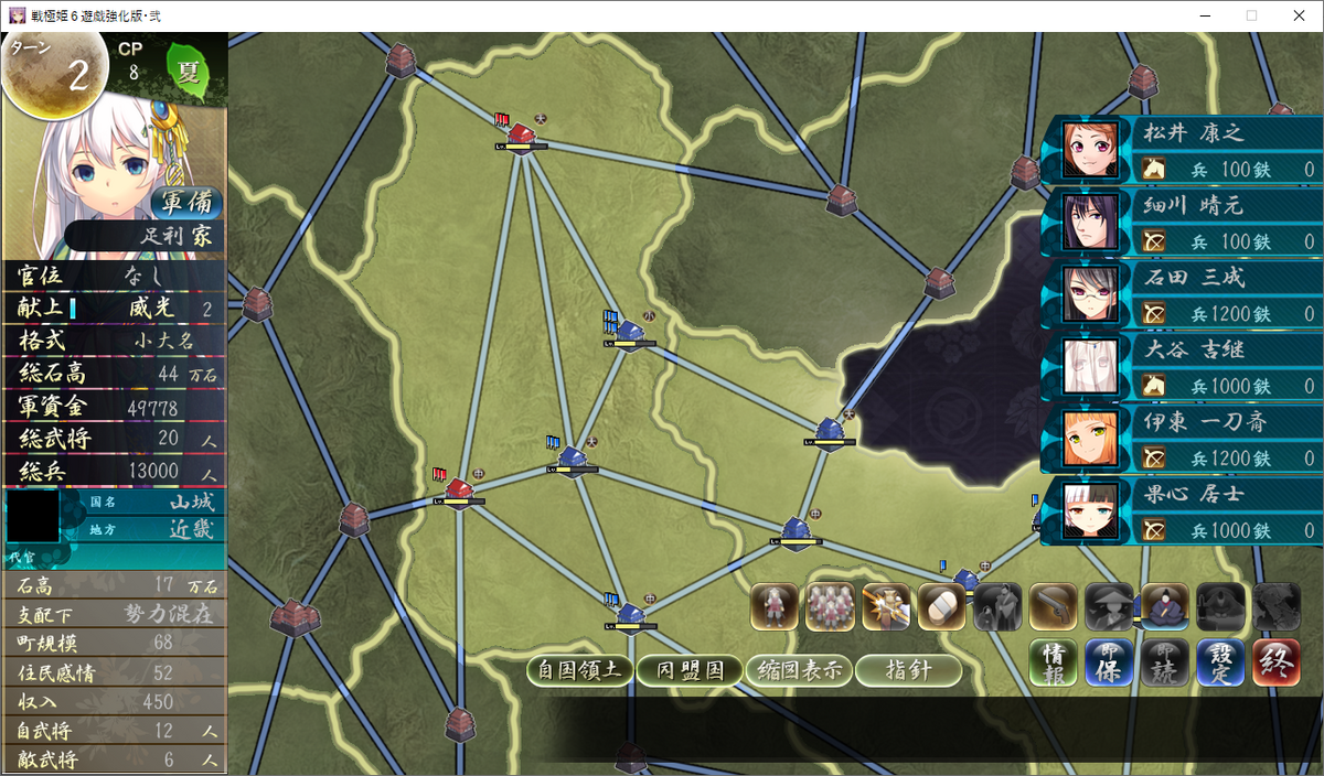 【戦極姫6】足利家ルート攻略手順②【山城侵攻~山城制圧まで】