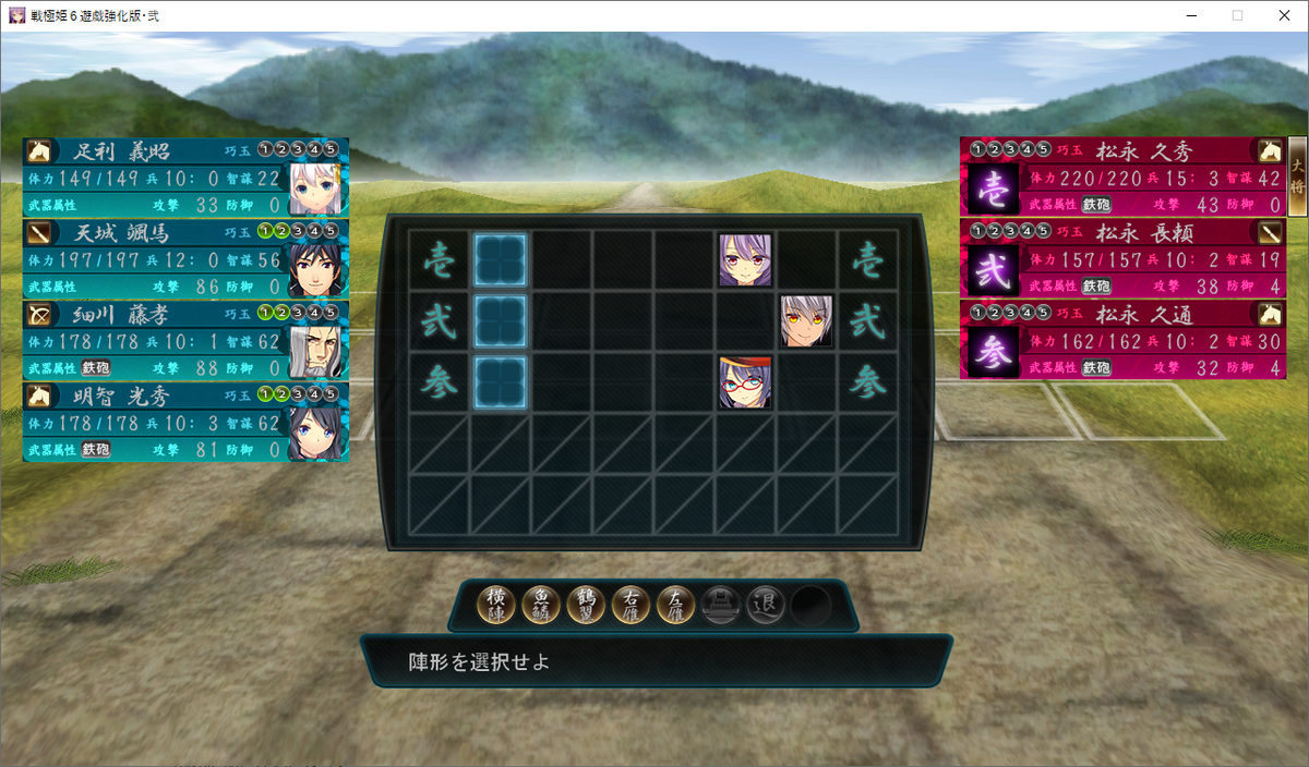 一番隊:細川藤孝(弓兵で遠距離攻撃)