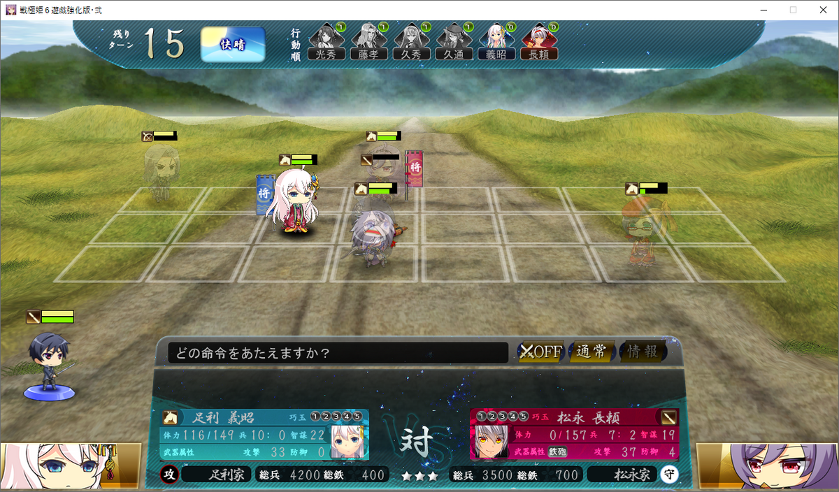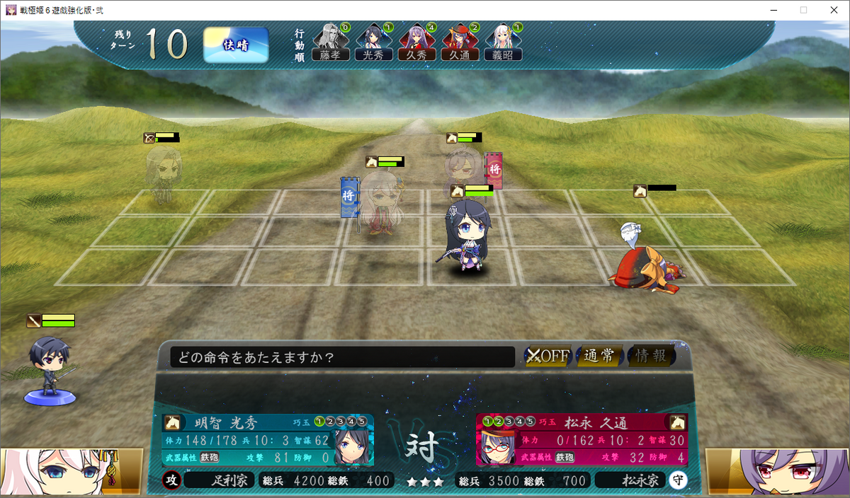 久頼が義昭に近づいてくるので、光秀(颯馬)を義昭の1つ前に出して側面から叩きましょう。