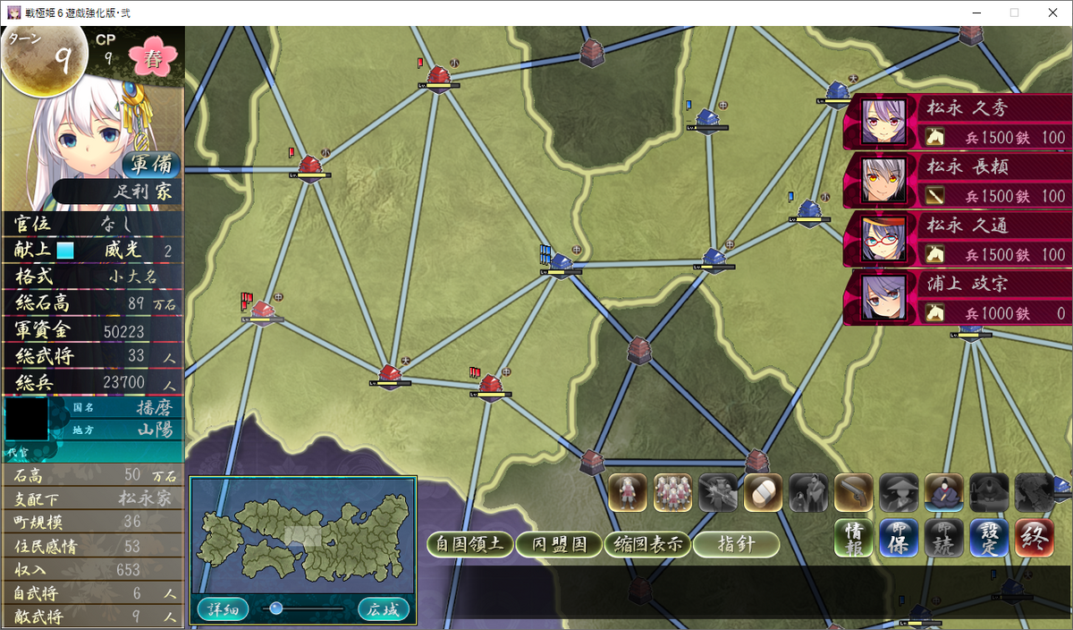 前回でイベント合戦にて松永家に勝利したことにより、山城が完全支配下になりました。