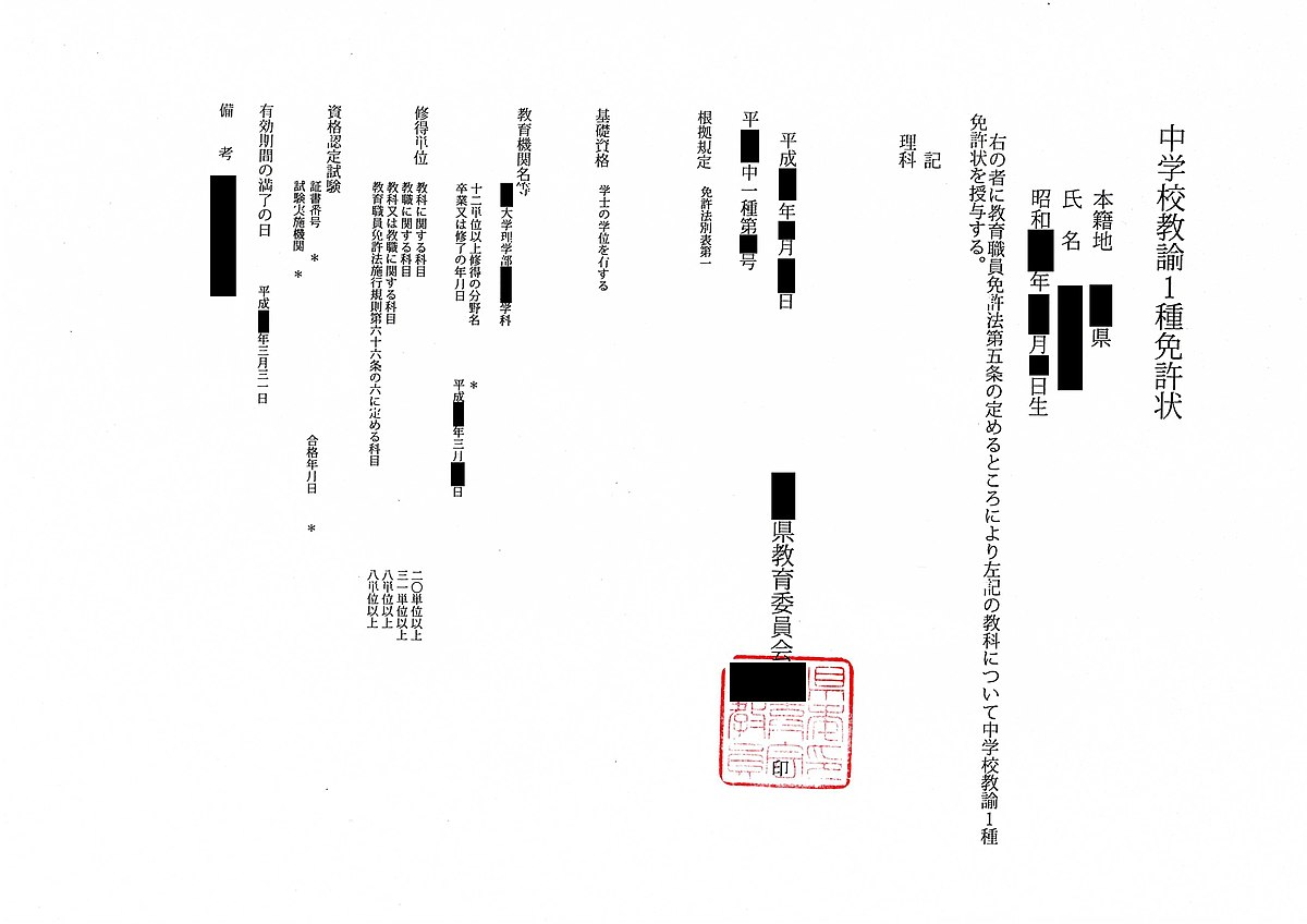 自分は教員免許(正式名称:教職教員免許状)は持っていません。