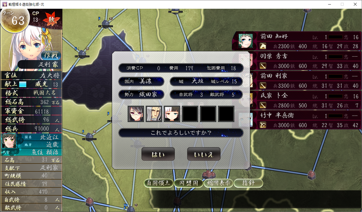 【戦極姫6】足利家ルート攻略手順⑨【伊予制圧~美濃制圧まで】