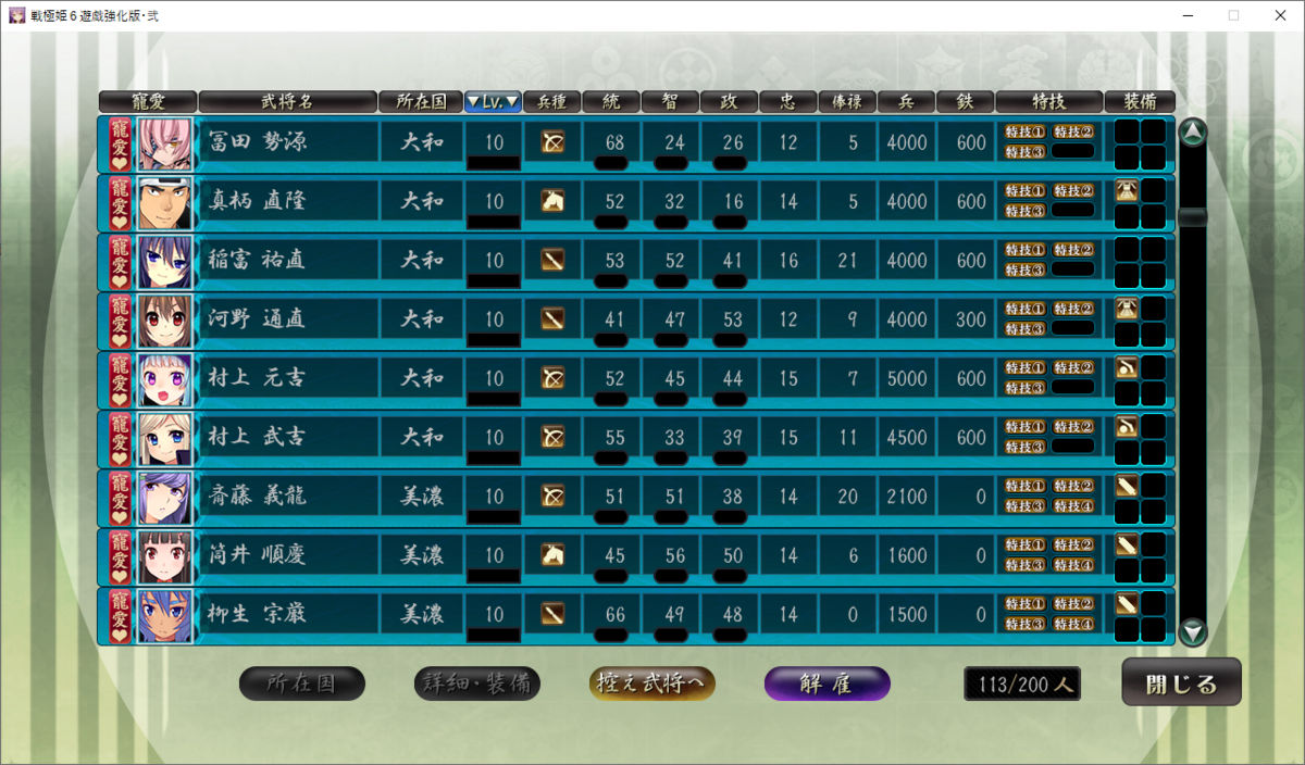 斎藤義龍、筒井順慶、柳生宗厳3人ともにレベル5です。