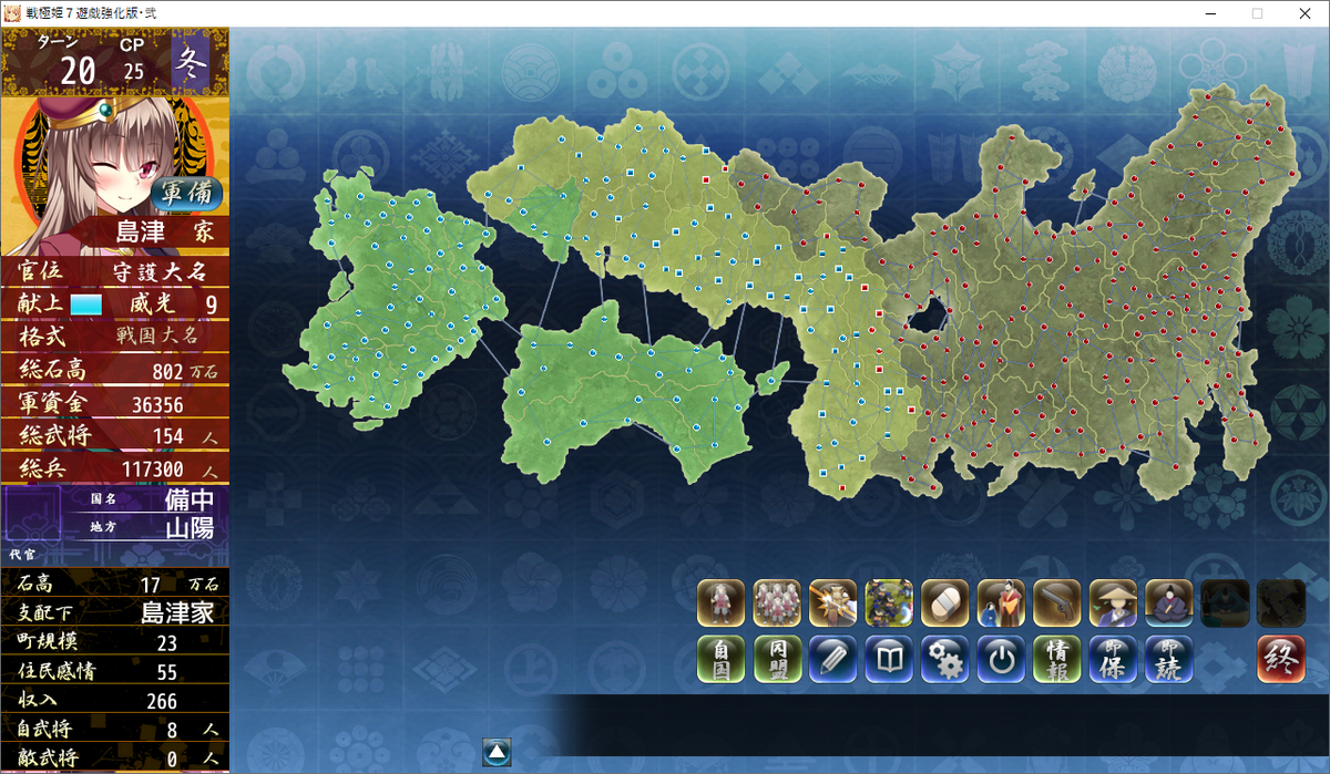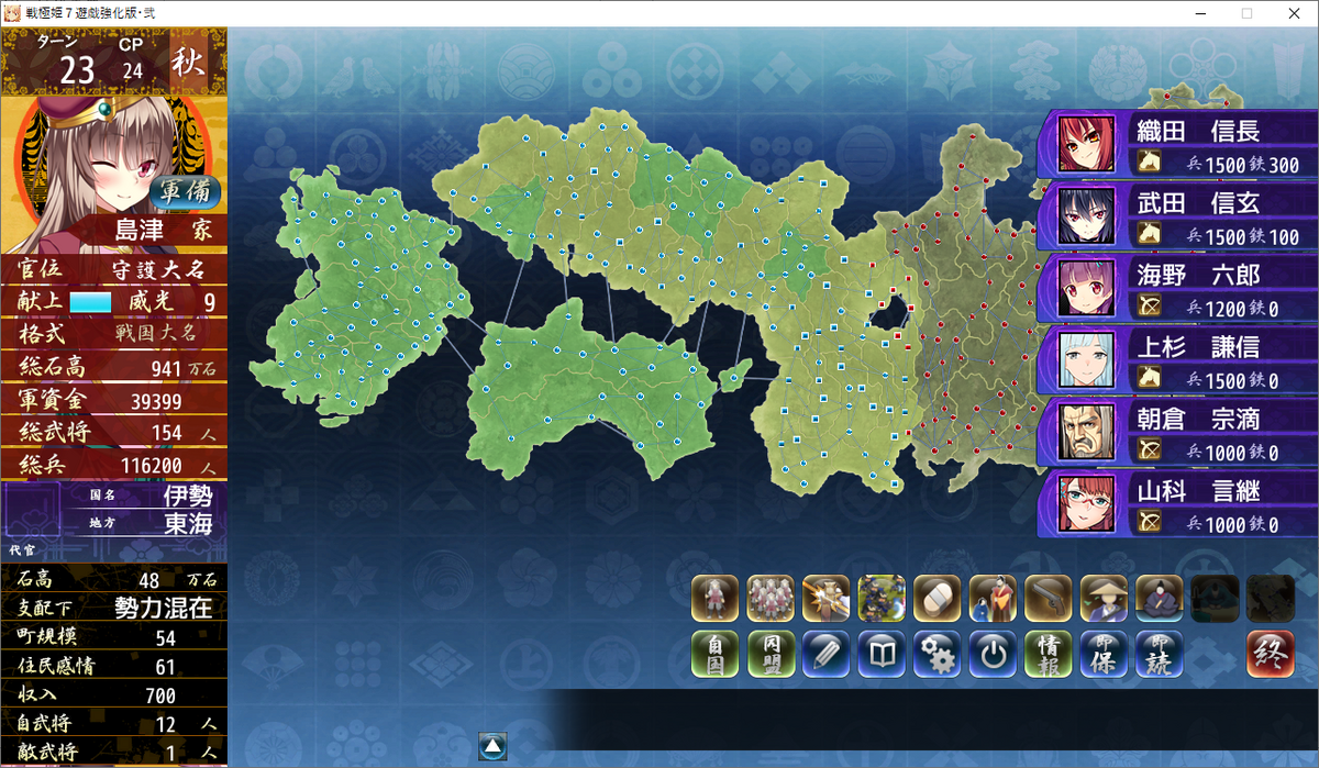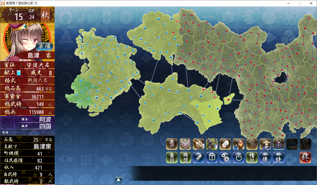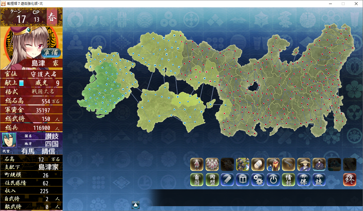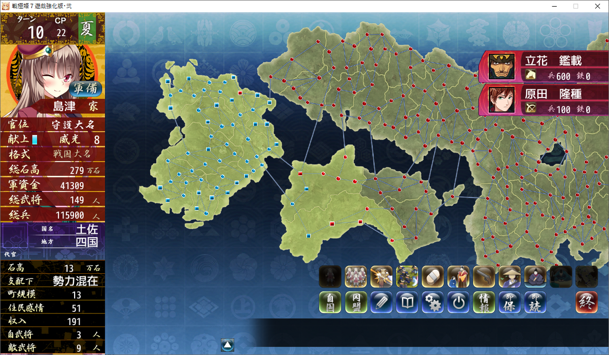 四国統一間近で、本州4国支配程度まで進みました。