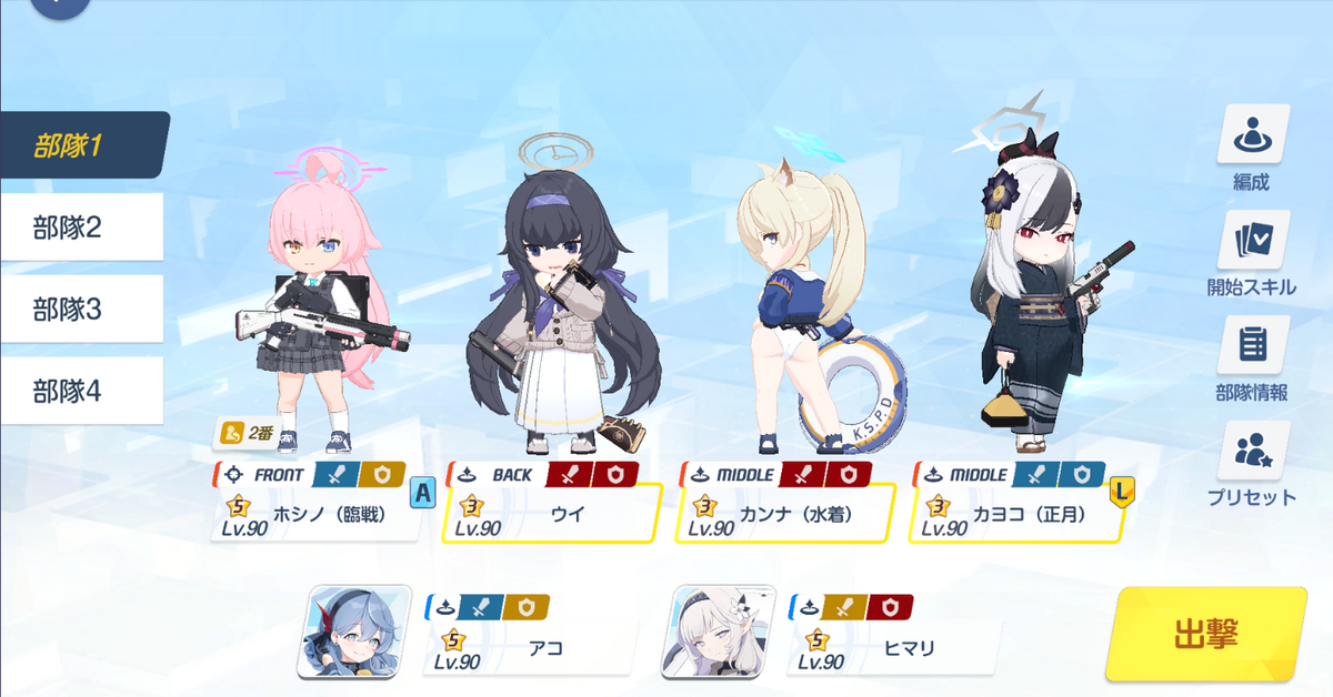 ③9.9コス:ホシノ→アコ→ヒマリ→カヨコの順に使用
