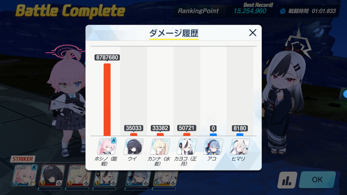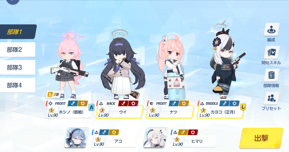 基本、完全体臨戦ホシノ(固有3ホシノ)がいれば1凸でクリアできるようですね。