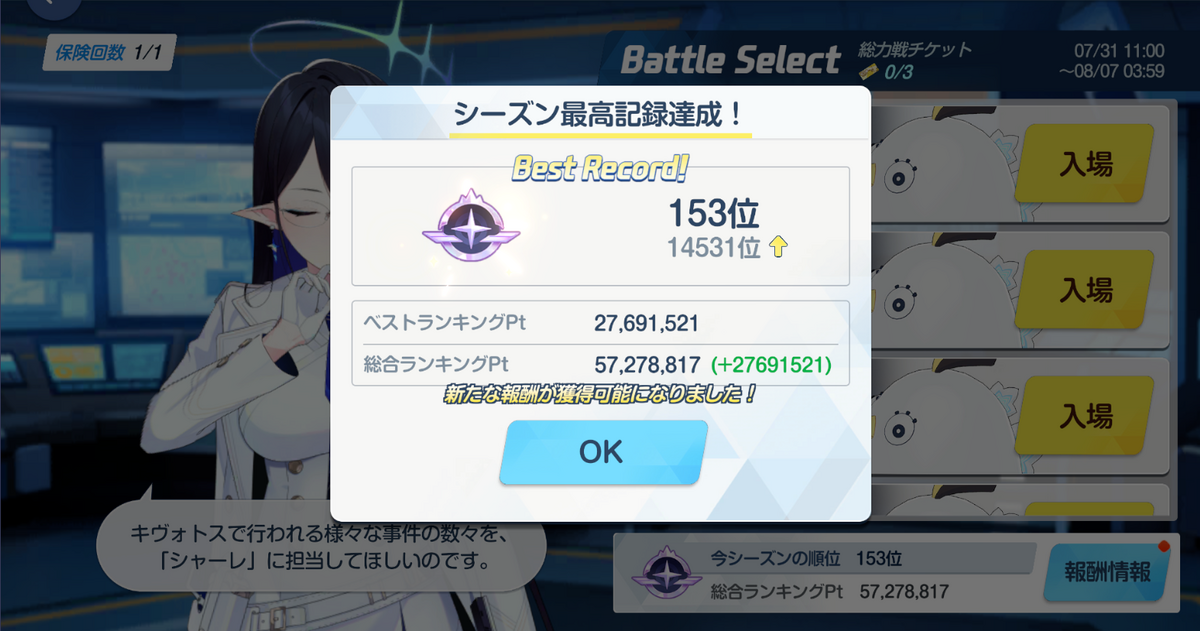 今日のInsaneクリア時点で順位は153位でした。