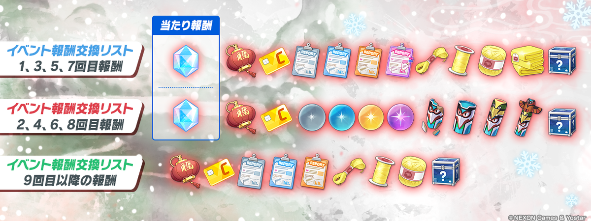 今回の目玉報酬はキャラの神名のカケラではなく、「青輝石」です。