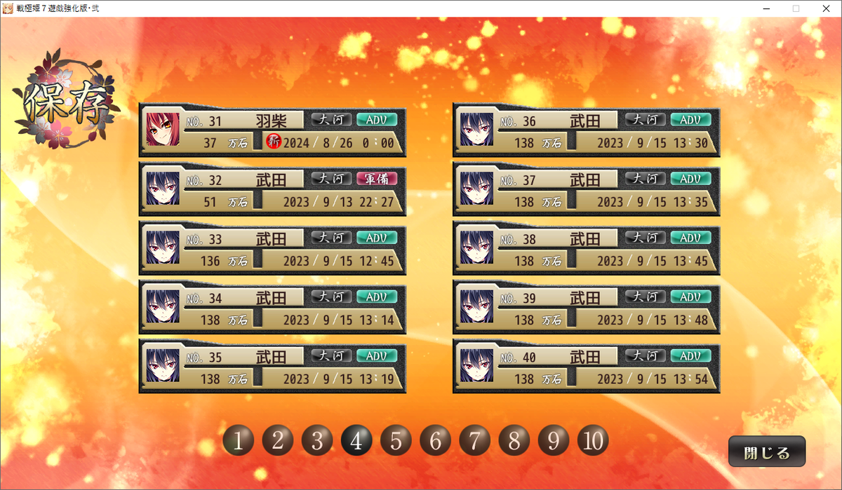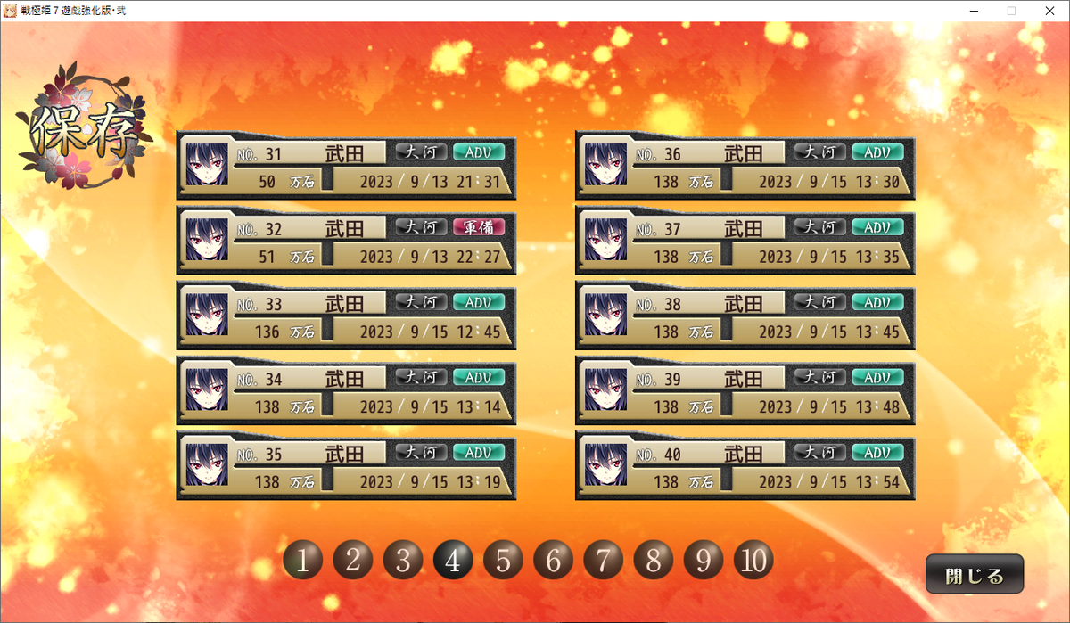 1シナリオ必ず10個は使う(1フェイズずつセーブするので)ので、武田家のセーブデータを上書きします。