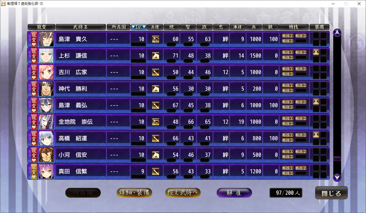 ただバグなのか仕様なのかは分かりませんが、「真田信繁」だけが「レベル9」という訳の分からない状況でした。