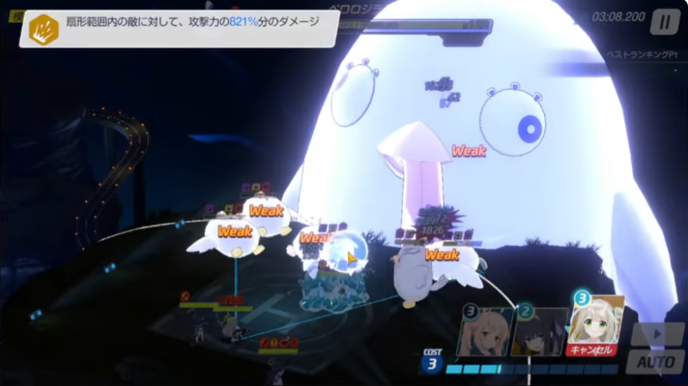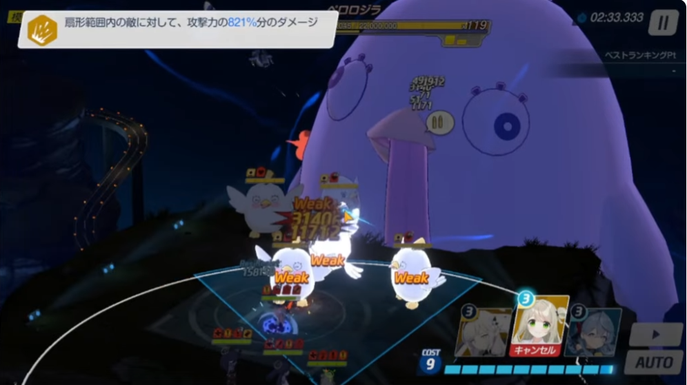それ故に単体攻撃キャラではなく、「範囲攻撃キャラ」、更に言うなら「広範囲攻撃キャラ」が重要です。