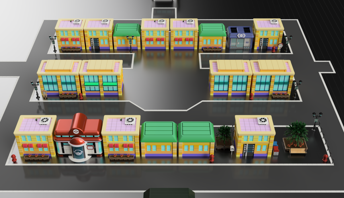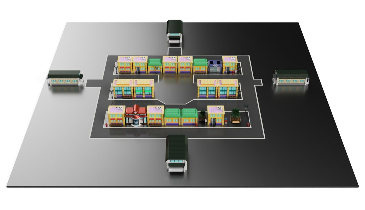 町中心部はほぼ出来上がり、残りは建物後ろの見えない部分に柵を配置します。
