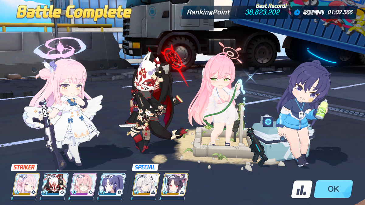 会心上振れを3セット連続で引く&回避が多く出てキャラ落ちを防ぐ(特に前に出るマリナと水着ホシノが場合によっては落ちます)