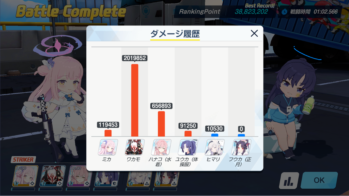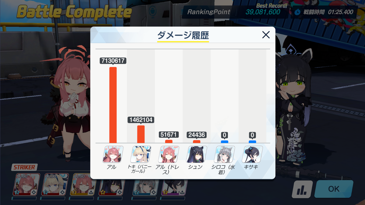 水着シロコをヒマリに変えて、ヒマリ→キサキ→アルの順で回せば火力が上がって2凸のハードルが下がりました。
