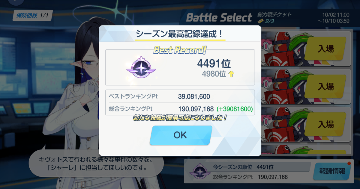 こんな貧弱なスコアでも10/4(金)の18時時点で3000位少しです。