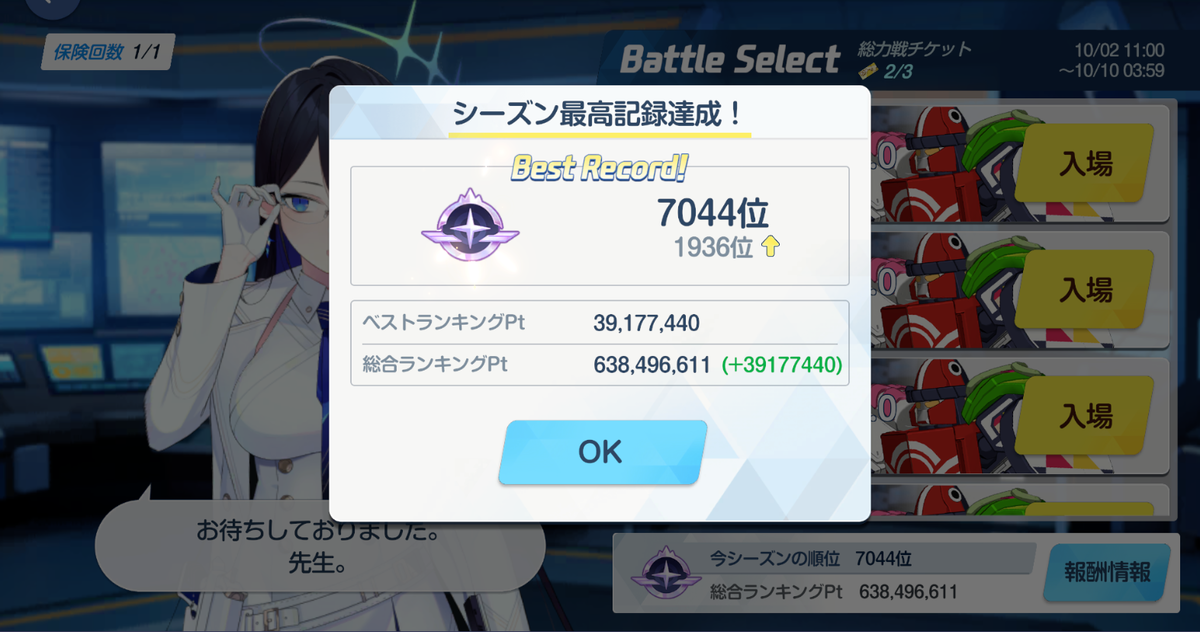 そもそもチナトロを取るのが目的で、総力戦最上位(順位2桁など)を目指しているわけではないので、安全圏に入ればあとは流しています(今回も毎日1回Tormentをやって、残り2回は掃討しています)。