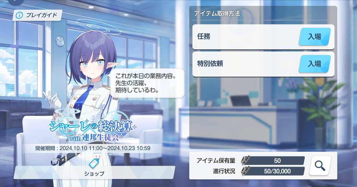 メンテナンス明けから「シャーレの総決算」が開催されています。