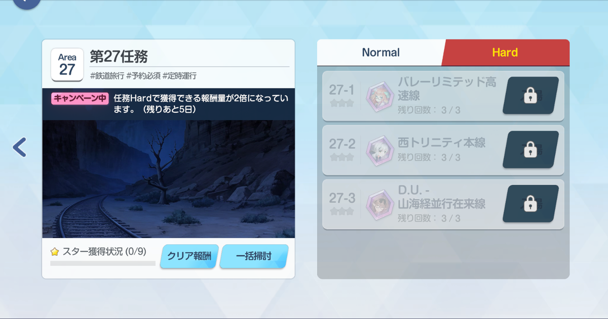 とにかく、まずは任務Area27をHard含めて★3を取ることですね。