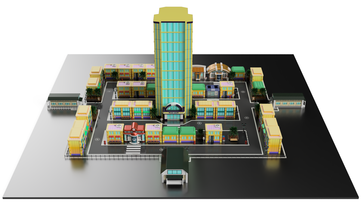 全体を見ていて気づいたのですが、シルフカンパニー本社ビルの入口の上にあるロゴが作られていませんでしたね。