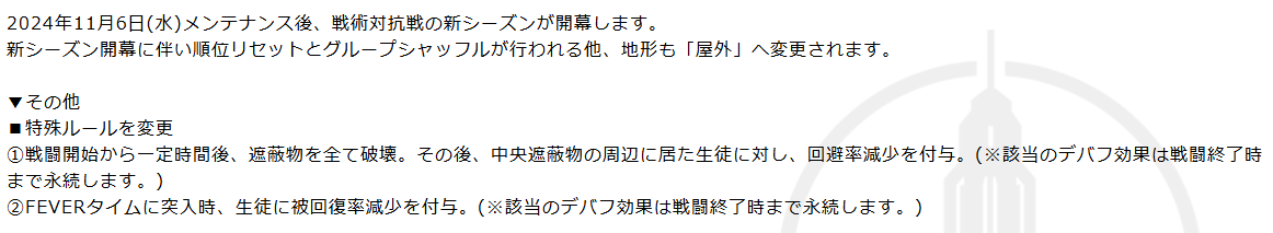本日11/6(水)の17時より戦術対抗戦の「シーズン8」が始まりました。