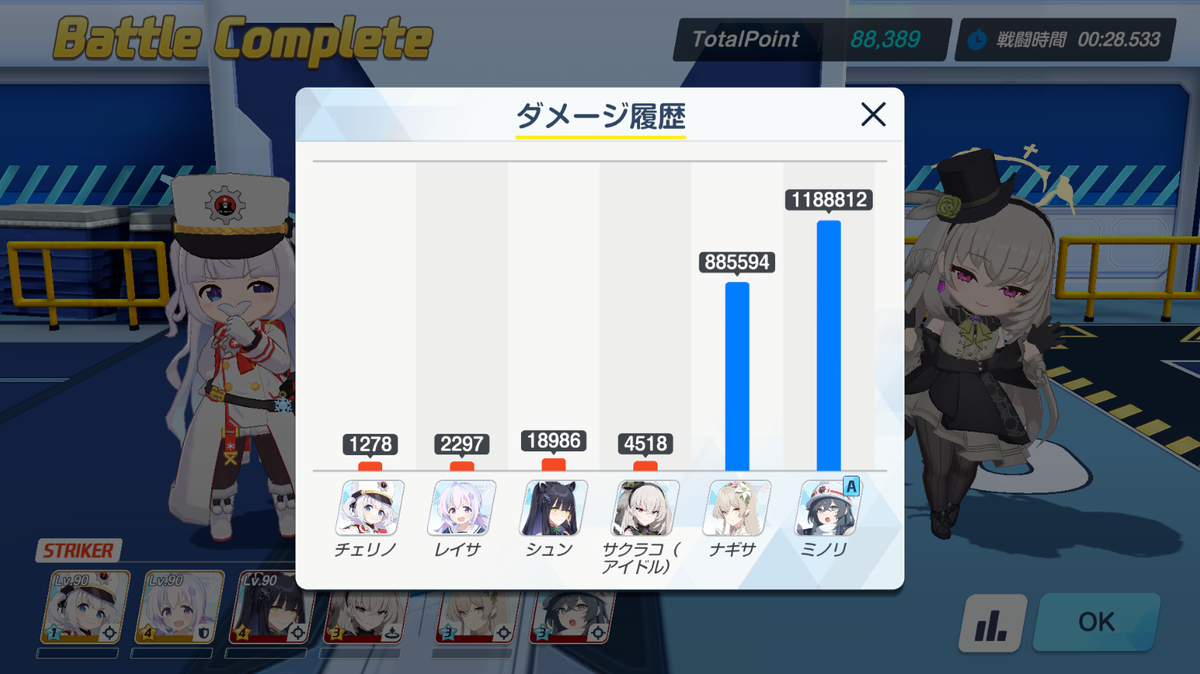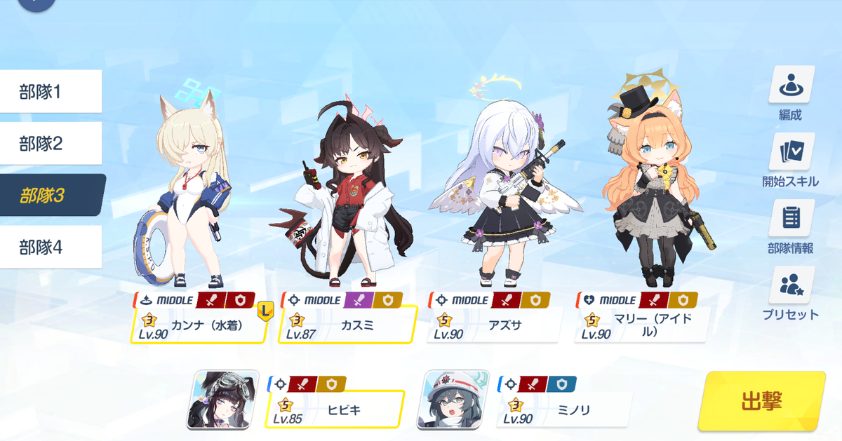 アバンギャルド君が倒されないようスキル回し(特にミノリの火力を上げるために+3コストを消費しすぎるなど)は要注意です。