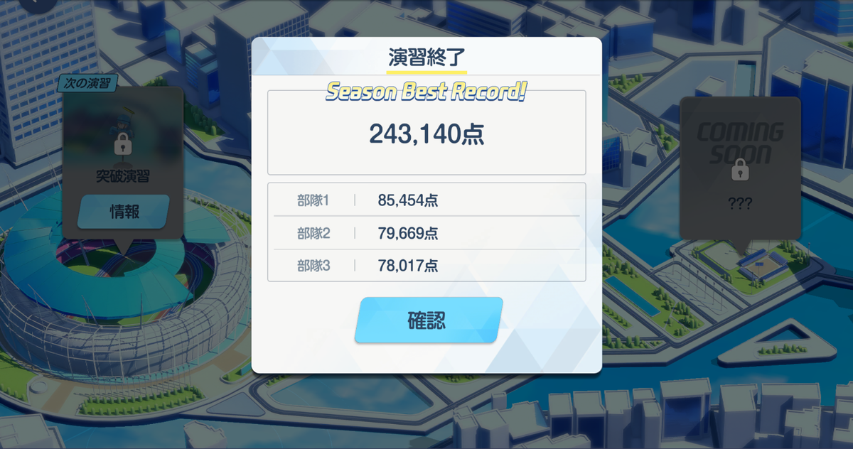 ちゃんと育成出来ていれば「スコア243,000以上」は出せます。