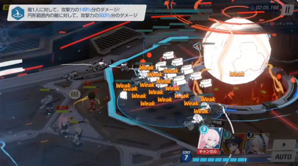 即時:水着ハナコを左寄りに使用(右3体程度を残す。グロッキーゲージ調整&コスト貯めのためです)