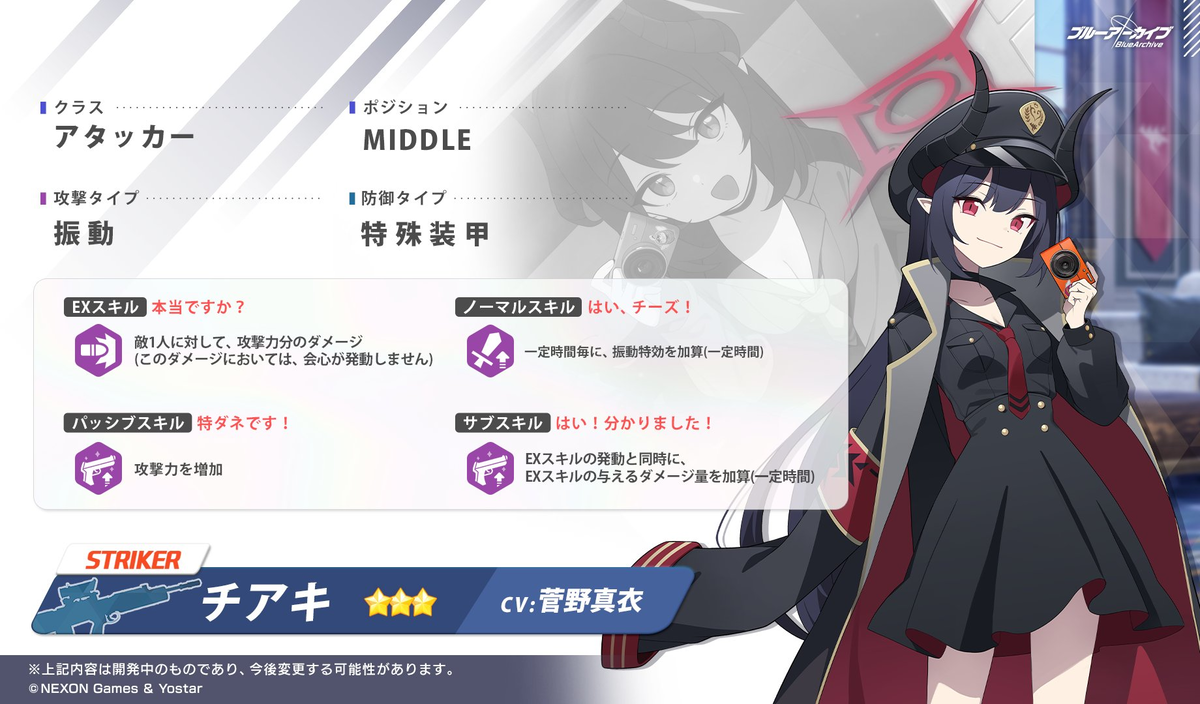 チアキは「STRIKERキャラ」で数少ない「振動属性キャラ」です。