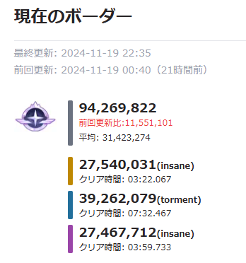 3種装甲Insaneは漏れなくボーダー漏れなっているので、チナトロを目指すなら2凸3カパクリアが必須です(4カパだと現時点でのタイム的にも厳しそうです)。