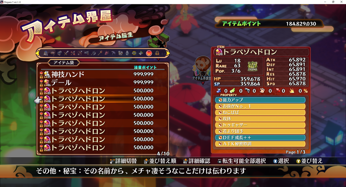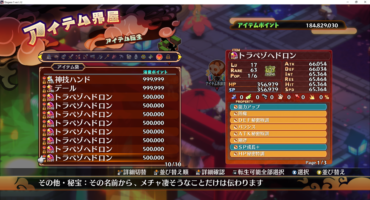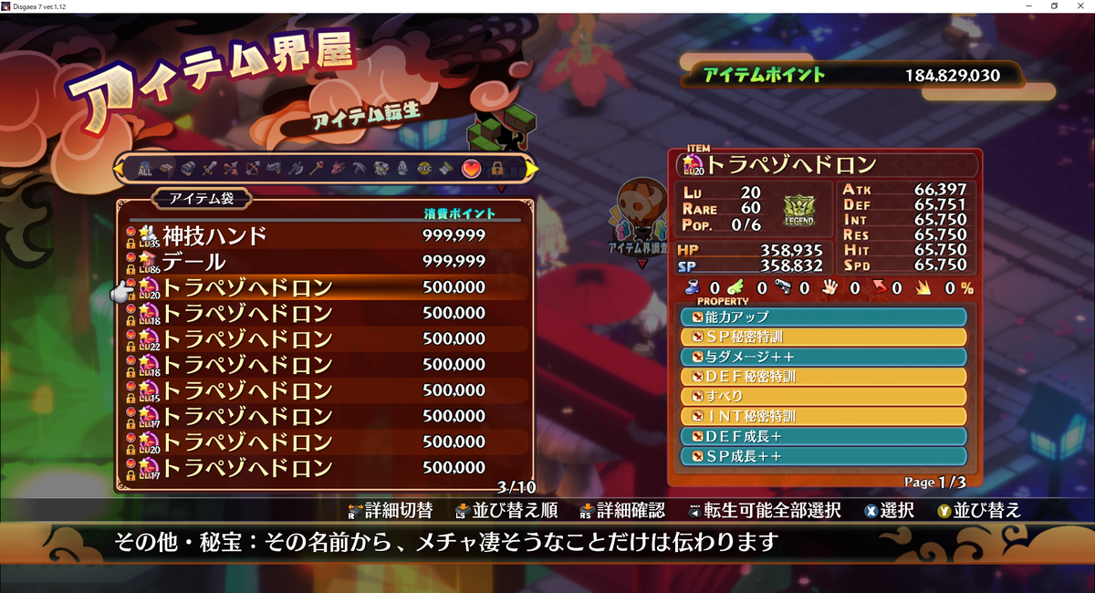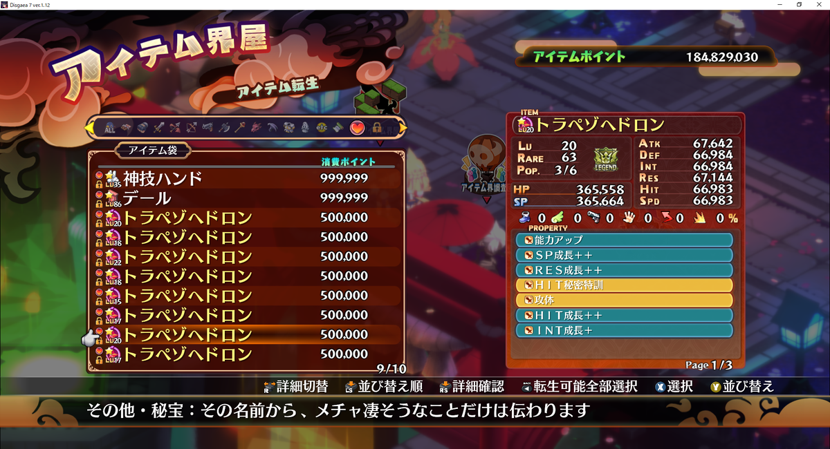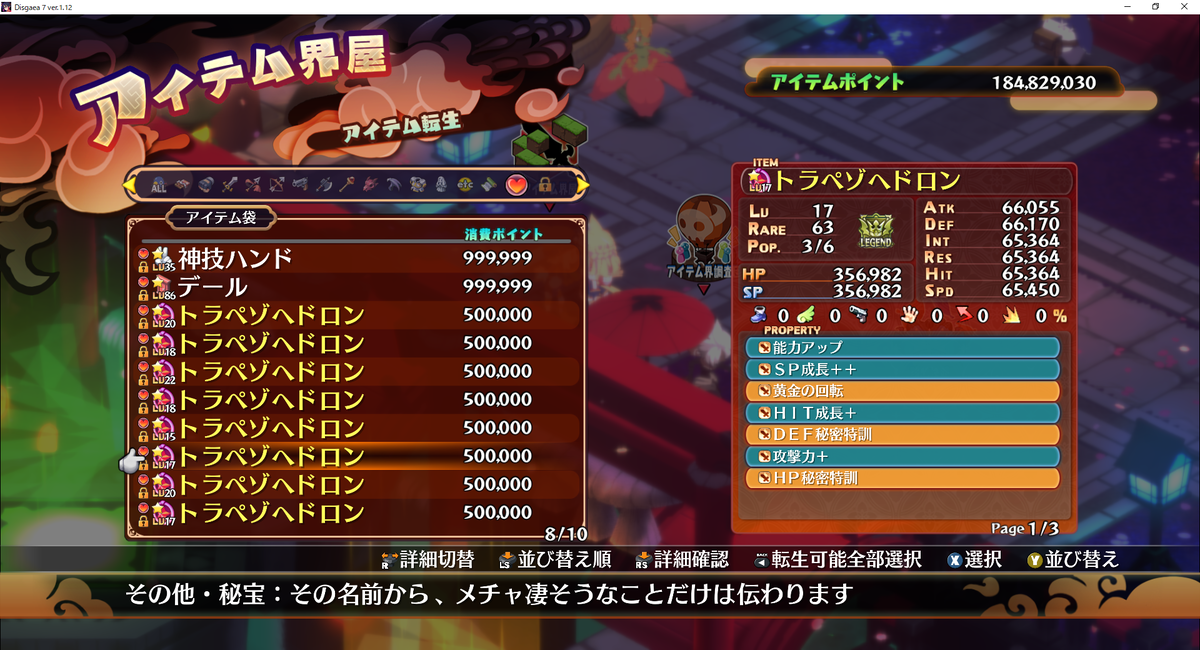 とりあえず修羅トラペゾヘドロンを8個確保したのでアイテム調査団に放り込んでプロパティ厳選作業をしてみました。