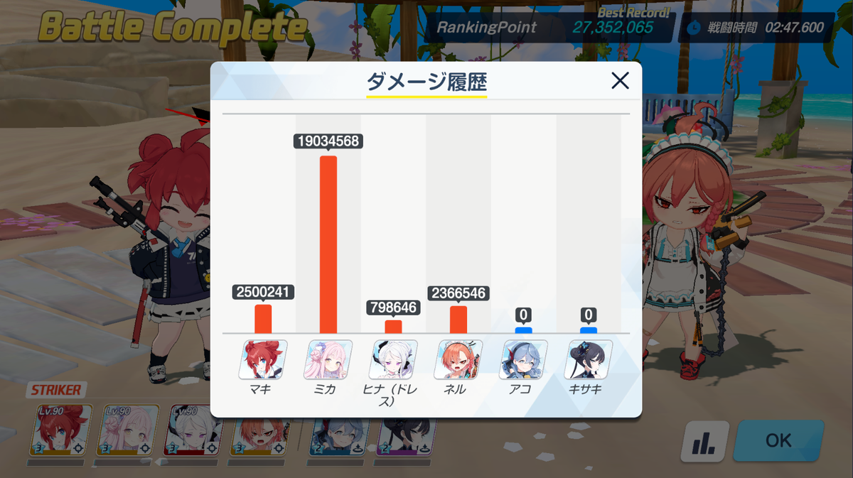 確定会心攻撃持ちのミカ+EXスキル火力アップのキサキの相性は抜群です。