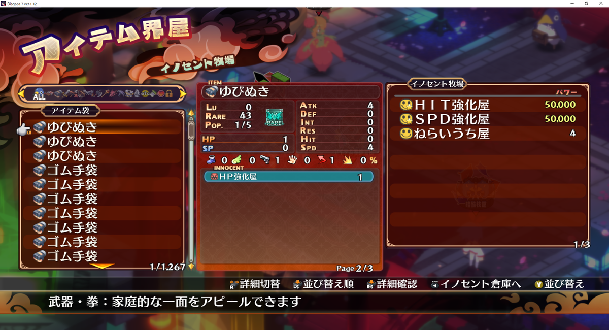 99デールが23個ほど複製できて、魔ソリン消費でヘル稼ぎをしたところ、2回目でHITとSPDの複合イノセント「ねらいうち屋」が生まれました。