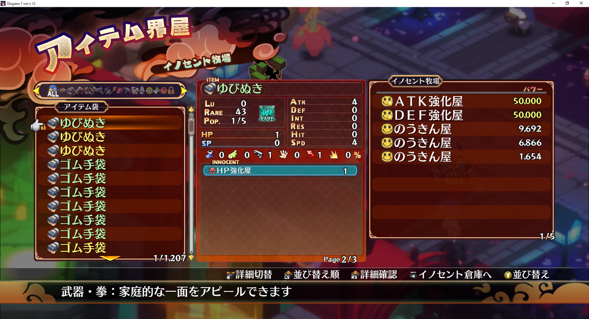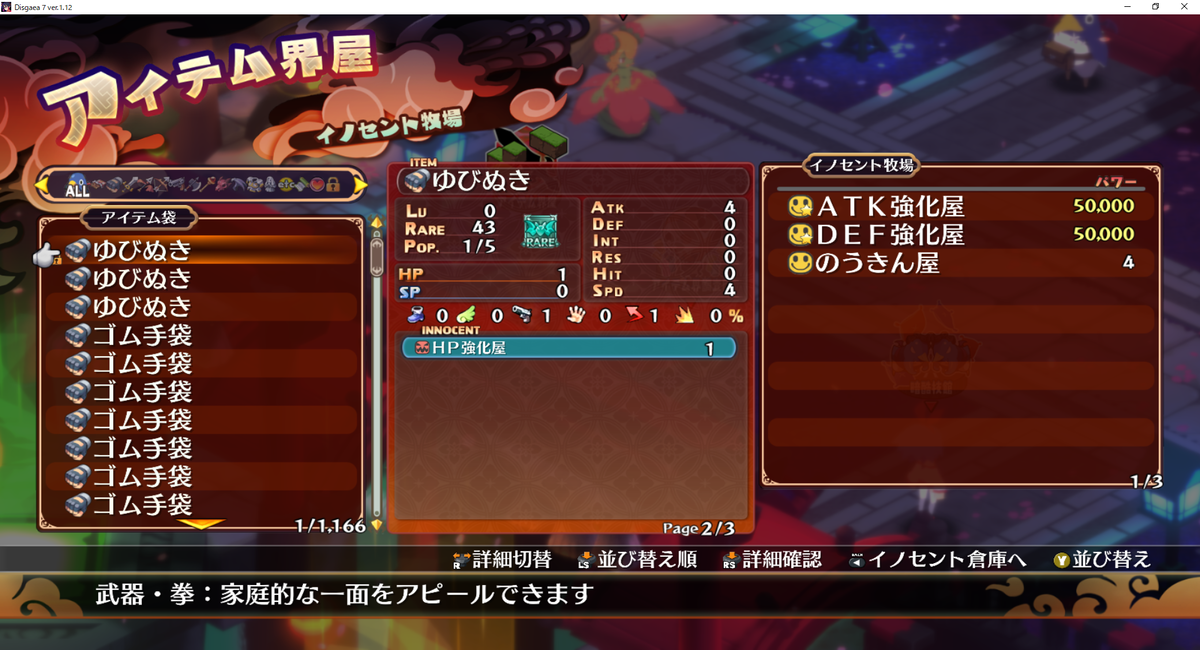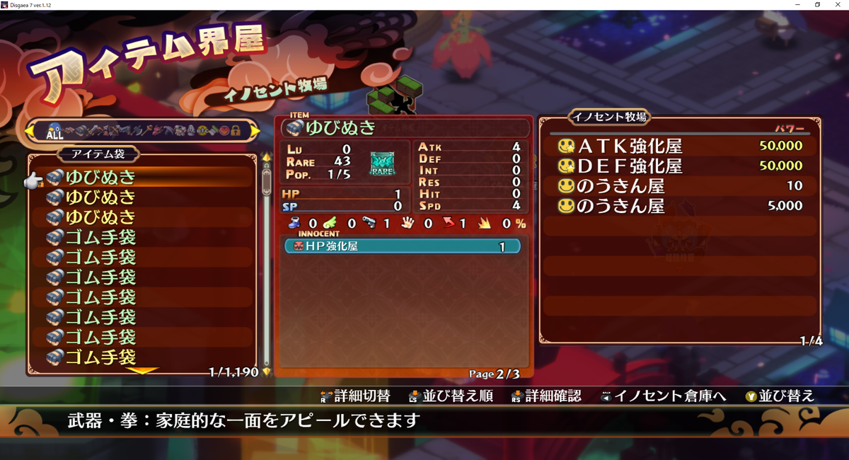 既にHP+SPの「げんき屋」は5万にしているので、これら4つをカンストまで育成させれば、あとはアイテム複製作業と同時並行できますね(デールなどに放り込んで複製。当然中に入れているイノセントもそっくりそのまま複製されます)。