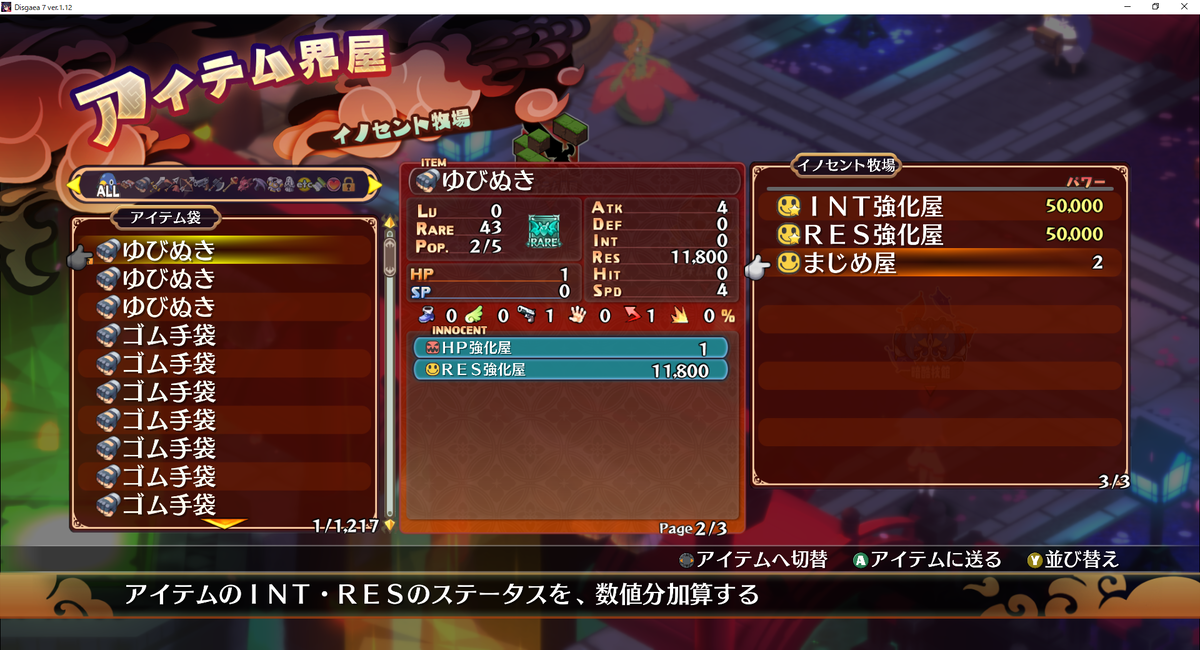 魔ソリンが300になったので、魔ソリン消費がてらRP稼ぎ=アイテムポイント稼ぎのためのヘル稼ぎで魔ソリン30を使ったら1発でINTとRESの複合イノセント「まじめ屋」が生まれました。