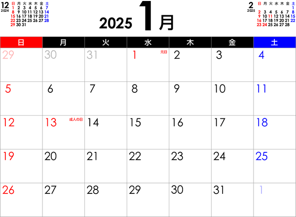 そして1/13(月)は「成人の日」で休みとなり、3連休となります。
