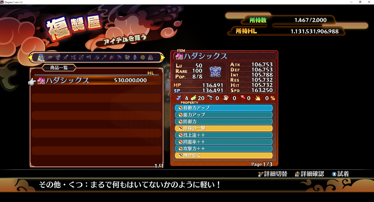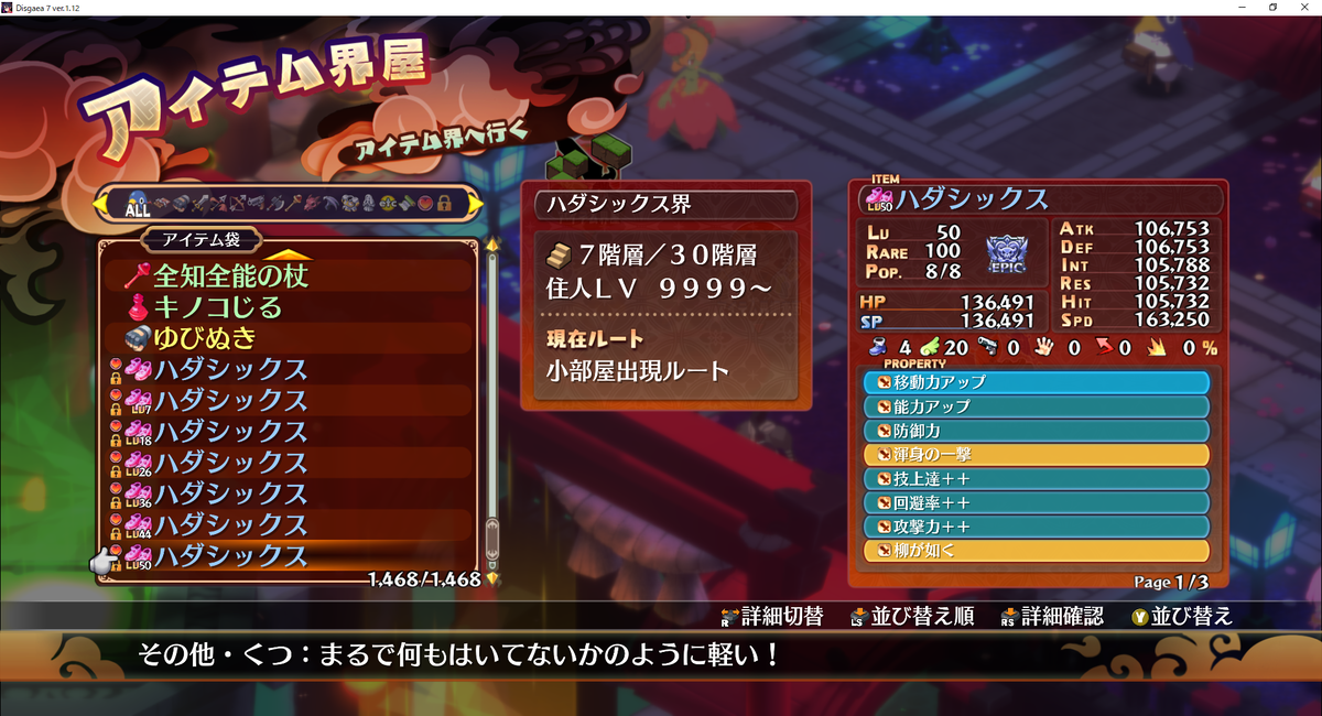 一応、消費アイテムにも無関係の「攻杖」が付いたりするなどを確認していますが、ハダシックスに無関係プロパティがつくのは初めてですね。