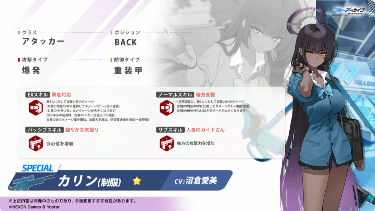 「カリン(制服)」はイベント配布キャラ(★1)となります。