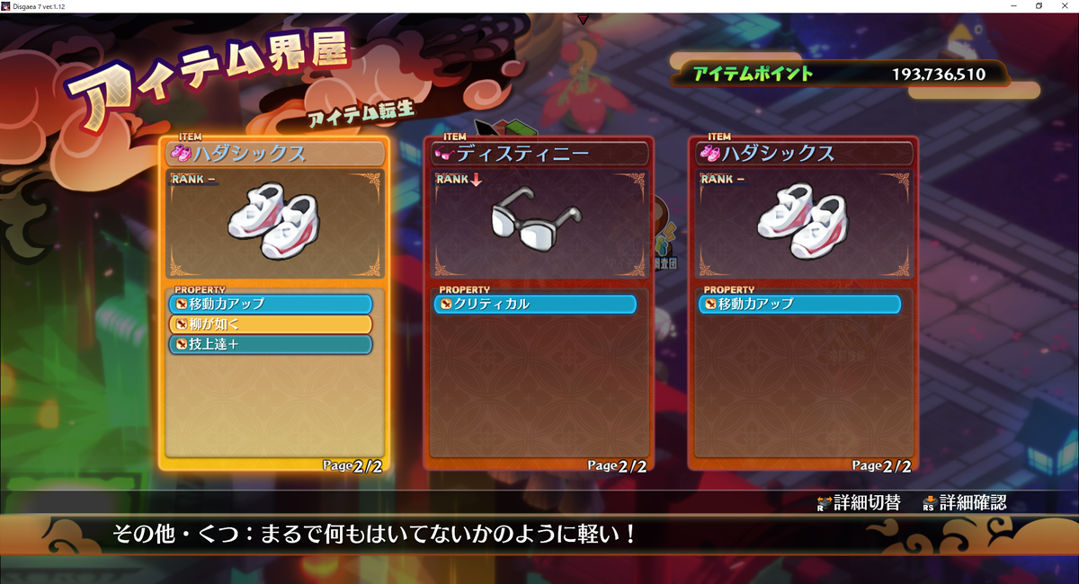 前回で、ハダシックスに狙いのプロパティ1つが付いたので、それをベースにプロパティを厳選していきます。