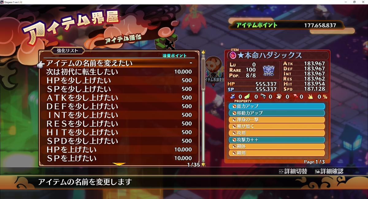 できれば早くハダシックスに狙いのプロパティが付いてくれることを祈ります。