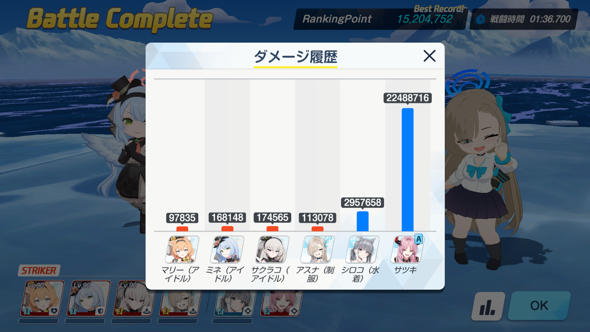 ・サツキ:前回の3周年イベント復刻時とともにチアキと合わせて新規実装されたSPECIALキャラ。ミノリと同じく、追加コストを払うことで火力アップ。今回のSPECIAL火力キャラ筆頭クラス
