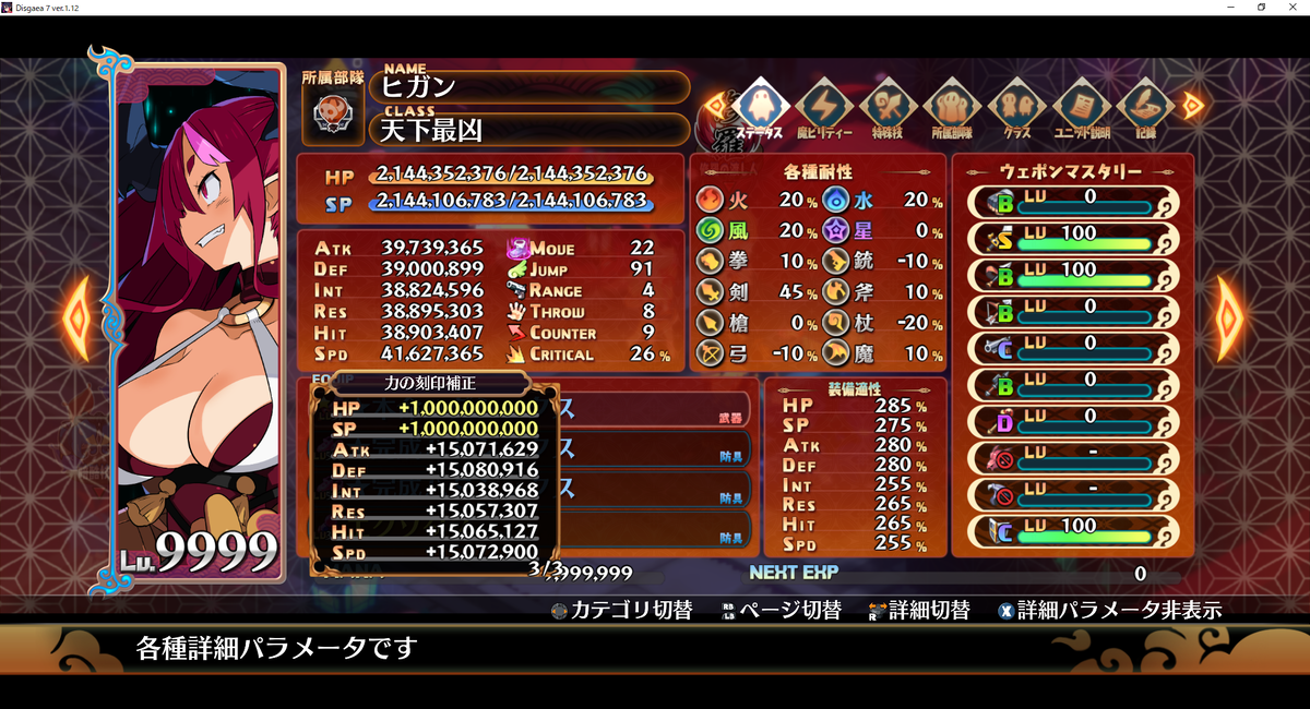 今までの「力の刻印」ではATK~SPDまでは「9999」ずつしか得られなかったのですが…