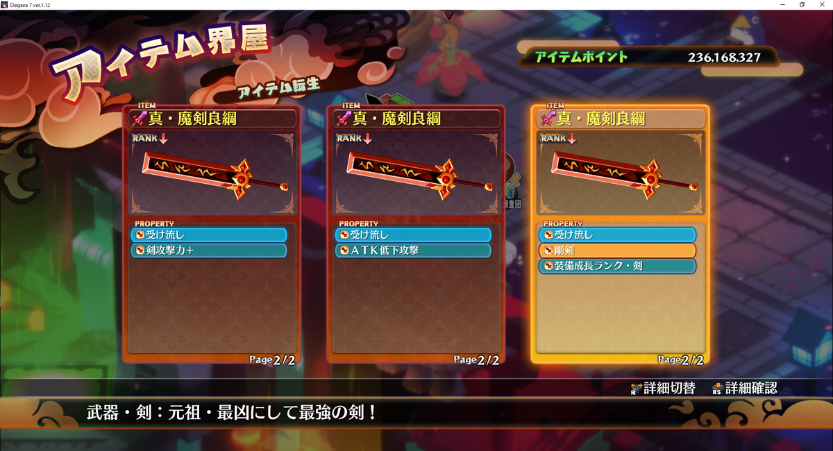 あとは修羅ハダシックスと同じく、ただひたすらに転生→プロパティ厳選です。