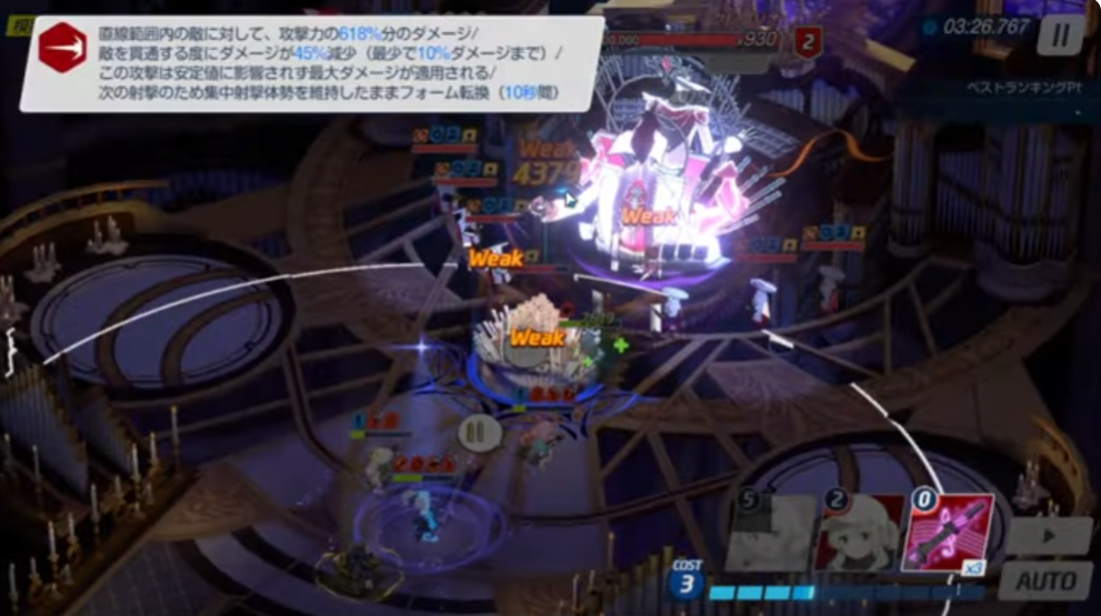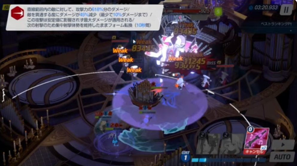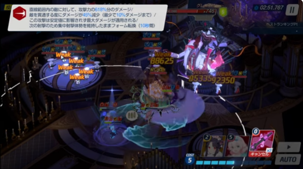 ポイントはキサキのバフ持続時間の間にドレスヒナ3発を撃つこと(かなり素早い操作が必要)、会心上振れです