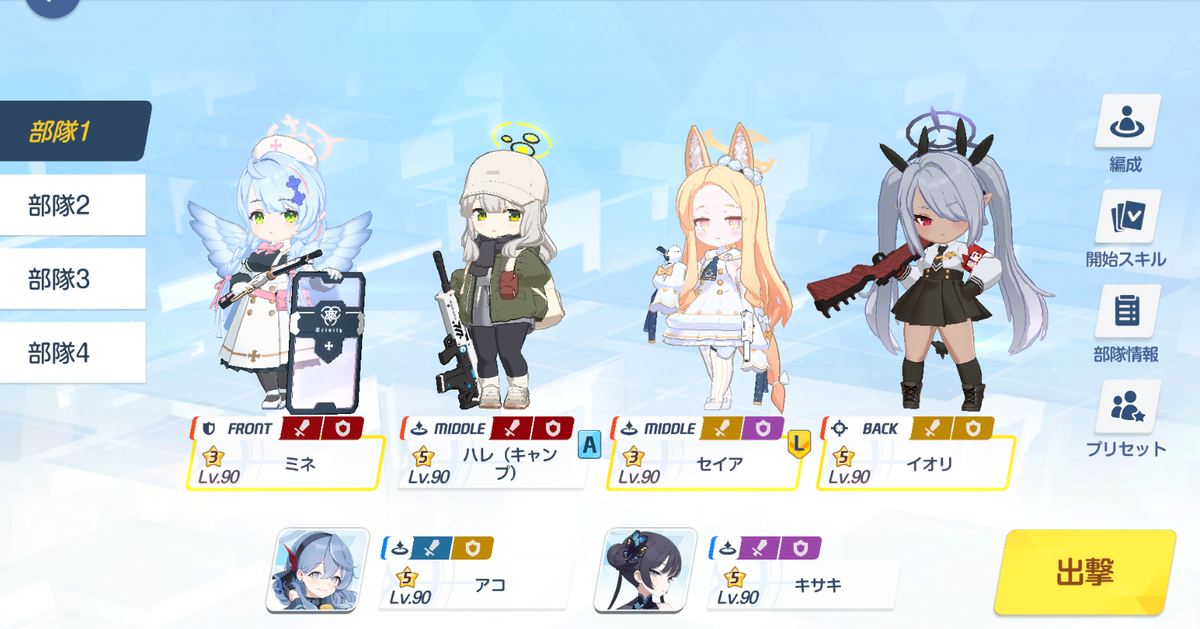 ただし、ちゃんとスキル回し(アコとキサキ)をしていれば2回に1回は通るはずです。