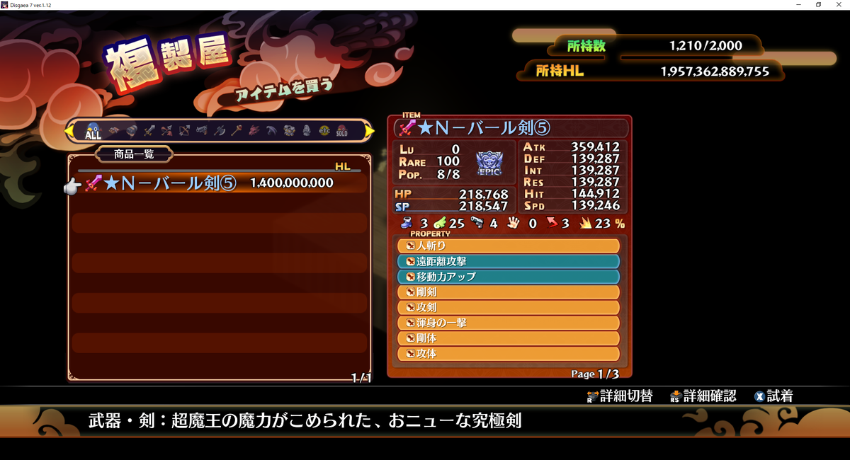 まだまだ続くN-バール剣のプロパティ厳選作業