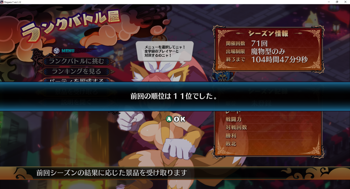 ランクバトルシーズン70の結果