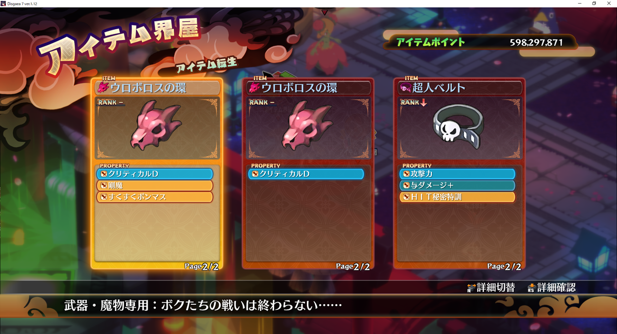 ここで、そろそろ疲れたので一旦ディスガイア7から離れます。