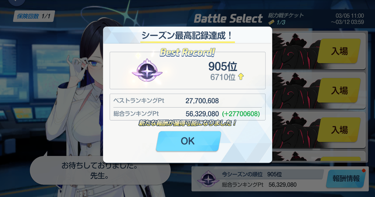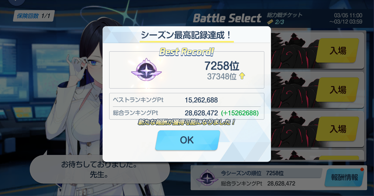 ゴルトロまで落ちていた(制服ネルの0コススキル回しが最適最速だった)が、一揆にチナトロ圏内へ。